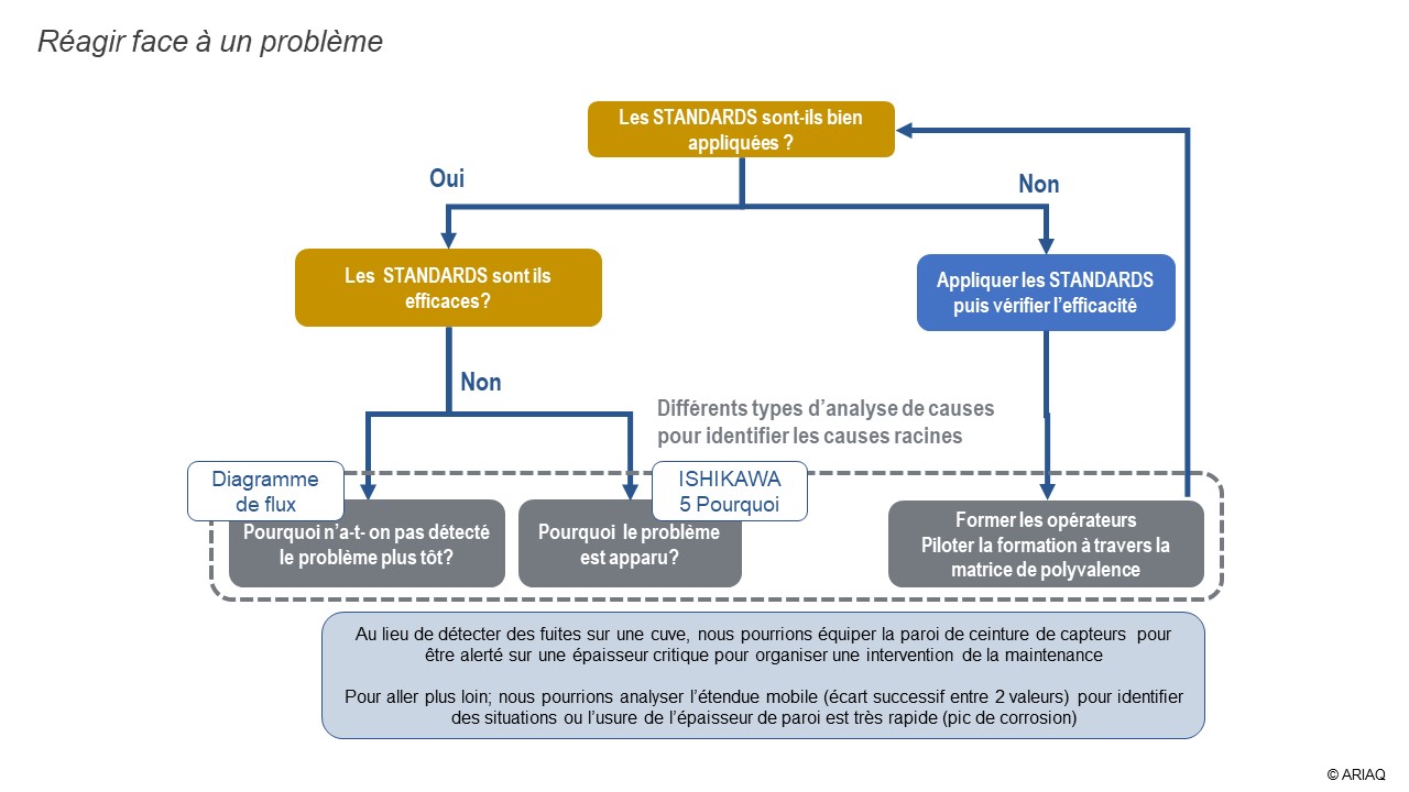 Lorsque nous nous sommes assurés que malgré le respect scrupuleux des standards ; la non-conformité est toujours vivace ; nous devons engager une analyse de causes pour rechercher les causes racines jusque-là méconnues.